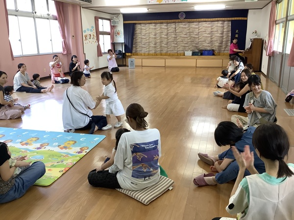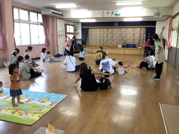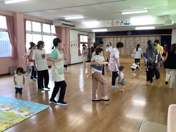 みわ先生のワクワクリトミック♪ 9月9日(火)の未就園児教室d!d!d!は‥みわ先生のわくわくリトミックでした♪お外はまだまだ暑いですねお部屋の中で涼しく楽しく身体を動かしました〜! お返事 はーい♡ ゆ〜ら ゆ〜ら ママのおひざの上で♪ 歩きますよ〜♪ 2025/09/11
