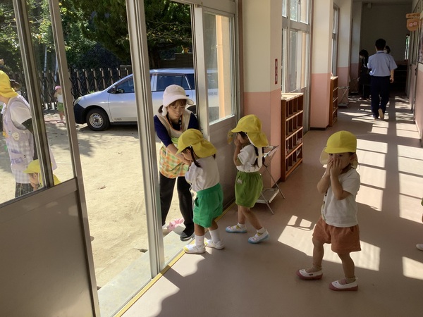 「火事です!火事です!」避難訓練 もしもの時のための避難訓練リリリリーーーー!!!「火事です!火事です!」先生の指示を聞いて落ち着いて避難しましょう「おかしも」のお約束ちゃんと守れましたね 慌てずに‥ 人数確認 おかしものお約束 上手に避難できました 2025/09/20