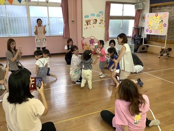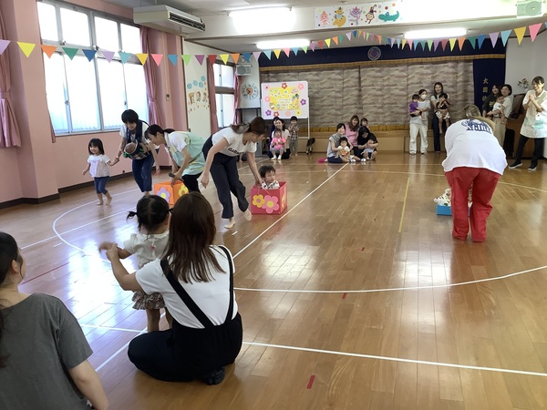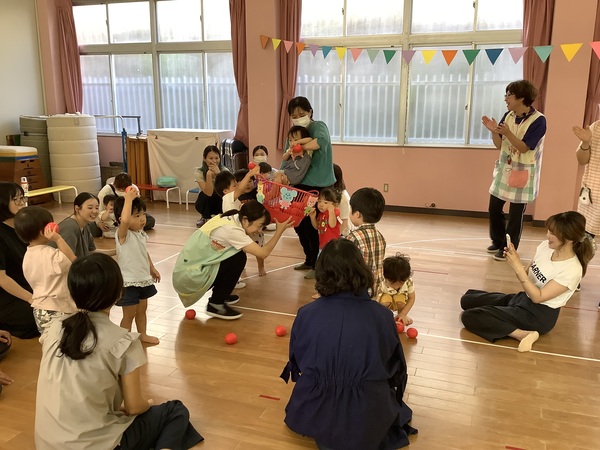 みんなでよーいどん! 運動会ごっこ! 9月30日(火)の未就園児教室d!d!d!はみんなでよーいどん!運動会ごっこでした〜かけっこや玉入れとーっても楽しかったね♪今度は幼稚園の運動会に遊びに来てね〜待ってまーす♪ バナナ〜♪バナナバナナ〜♪ ママもがんばれ〜 どんどんいれちゃえ〜 こっちも負けないよ どっちもがんばりました〜! 2025/10/01